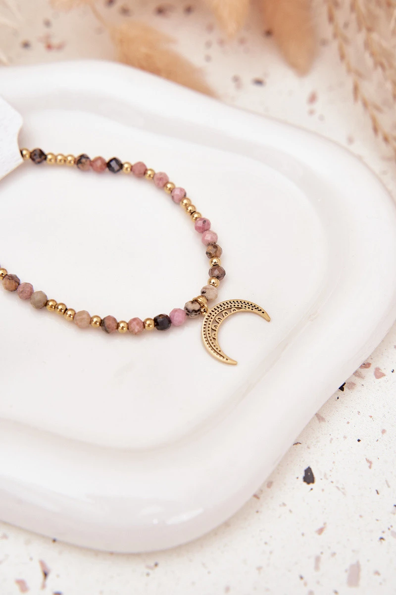 Roztomilý náramek na šňůrce je jemný doplněk, který krásně zvýrazní ženský styl. Vyrobený z nerezové oceli a ozdobných korálků, okouzlí pečlivým zpracováním. Celý doplněk doplňuje přívěsek s motivem měsíce, který dodává šperku výjimečný šarm a symbolický význam. Ideální na každý den i jako drobný akcent v elegantních outfitech.
