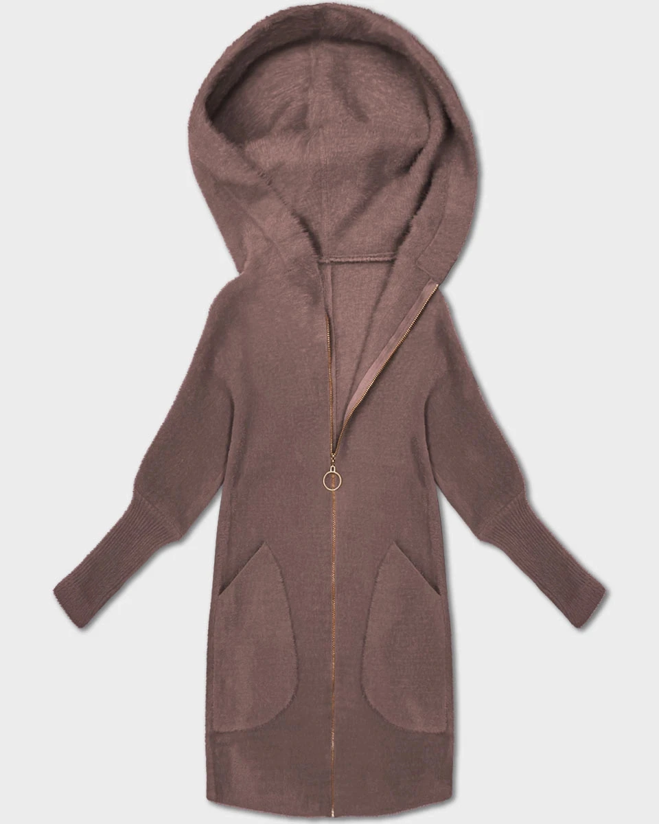 Bunda - přehoz přes oblečení typu alpaka v barvě mléčné čokolády s kapucí (19905.1)