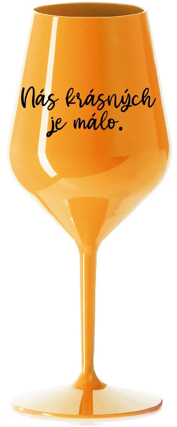 NÁS KRÁSNÝCH JE MÁLO. - oranžová nerozbitná sklenice na víno 470 ml
