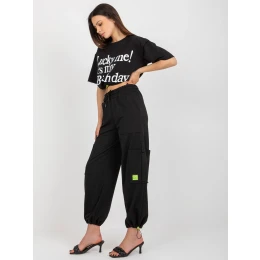 Černá dvoudílná tepláková souprava s kalhotami cargo.