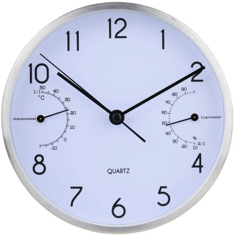 - s arabskými číslicemi ukazujícími každou hodinu, teploměrem a vlhkoměrem