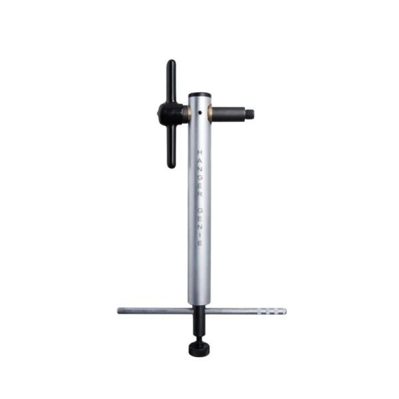 Hanger Genie je skládací a přesný nástroj pro přenastavení háčků zadní přehazovačky a udržení přesného řazení. Je kompatibilní se všemi velikostmi kol od 20˝ do 29˝+ a šrouby zapadají přímo do závitů háčku zadní přehazovačky. Přesný měřič lze uzamknout, takže neztratíte měření, když jej stisknete ve směru kola v různých polohách. Díky otočné spodní části nástroje můžete během práce snadno očistit rám.