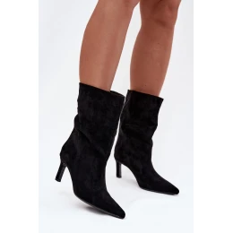 Nazouvací dámské kotníkové boty na jehlovém podpatku černé Solvienne