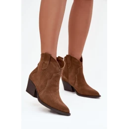 Dámské boty vyrobené z přírodního semiše jsou stylovou obuví v kovbojském stylu, která dodá každému outfitu charakter. Model s nasouváním zajišťuje pohodlí při obouvání a stabilní, zkrácené podpatky opticky zeštíhlují postavu a dodávají výjimečný vzhled. Špičaté nosy zdůrazňují ženský styl a odkazují na klasické kovbojky, takže boty se skvěle hodí jak k džínám, tak k lehkým šatům. Vnitřek vyhřátý obuvníkem zajišťuje tepelný komfort v chladnější dny, což činí model nejen nápadný, ale i praktický. Nabídka pro ženy, které ocení módní detaily a pohodlí každý den – boty se skvěle hodí do podzimně-zimních outfitů a dodávají jim originální westernový charakter. Při výběru velikosti se řiďte tabulkou velikostí.