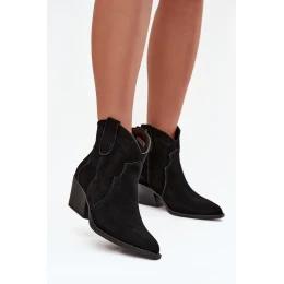 Dámské boty vyrobené z přírodního semiše jsou stylovou obuví v kovbojském stylu, která dodá každému outfitu charakter. Model s nasouváním zajišťuje pohodlí při obouvání a stabilní, zkrácené podpatky opticky zeštíhlují postavu a dodávají výjimečný vzhled. Špičaté nosy zdůrazňují ženský styl a odkazují na klasické kovbojky, takže boty se skvěle hodí jak k džínám, tak k lehkým šatům. Vnitřek vyhřátý obuvníkem zajišťuje tepelný komfort v chladnější dny, což činí model nejen nápadný, ale i praktický. Nabídka pro ženy, které ocení módní detaily a pohodlí každý den – boty se skvěle hodí do podzimně-zimních outfitů a dodávají jim originální westernový charakter. Při výběru velikosti se řiďte tabulkou velikostí.