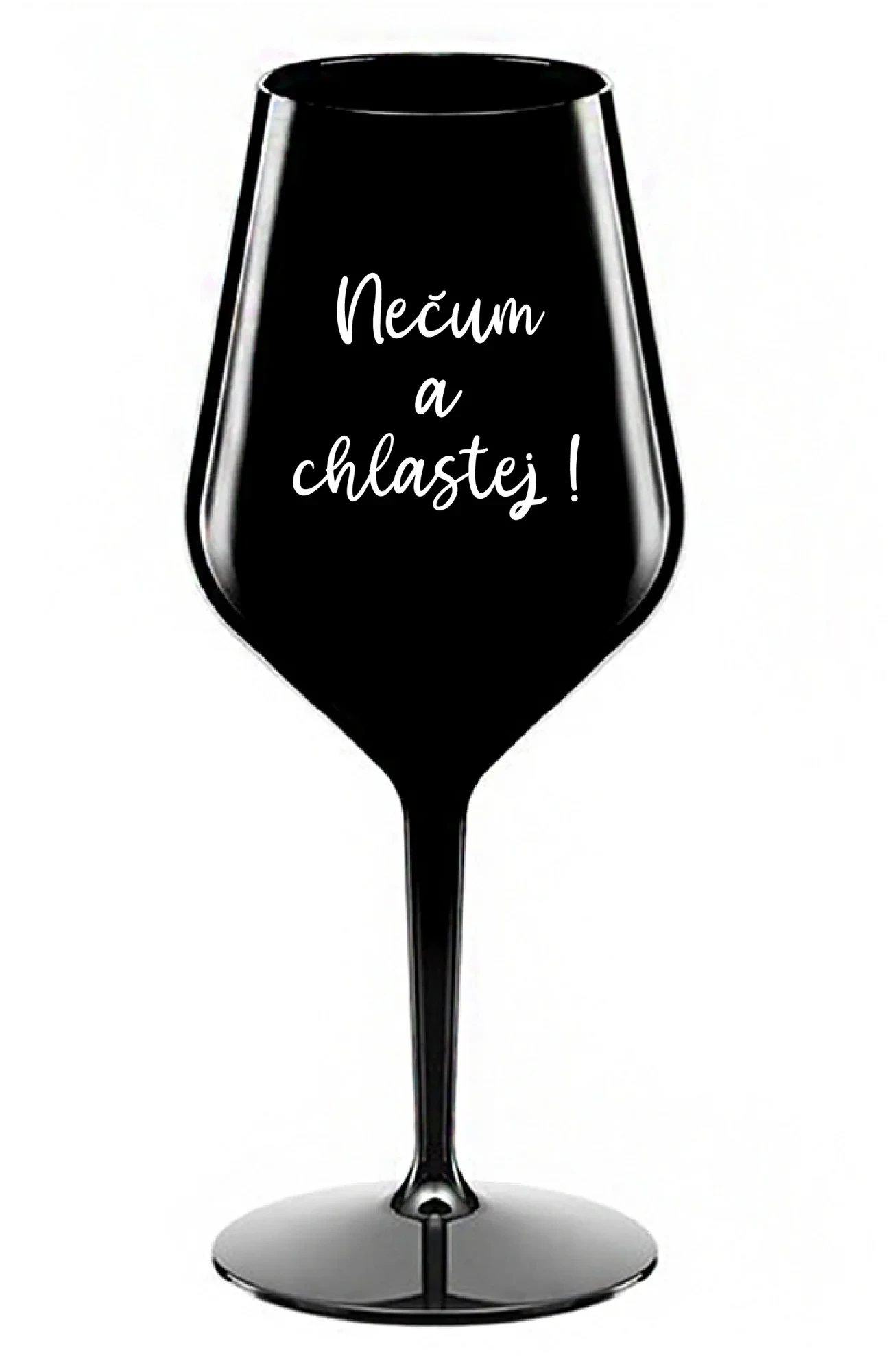 NEČUM A CHLASTEJ! - černá nerozbitná sklenice na víno 470 ml