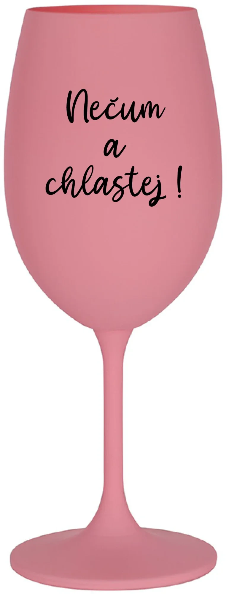 NEČUM A CHLASTEJ! - růžová sklenice na víno 350 ml