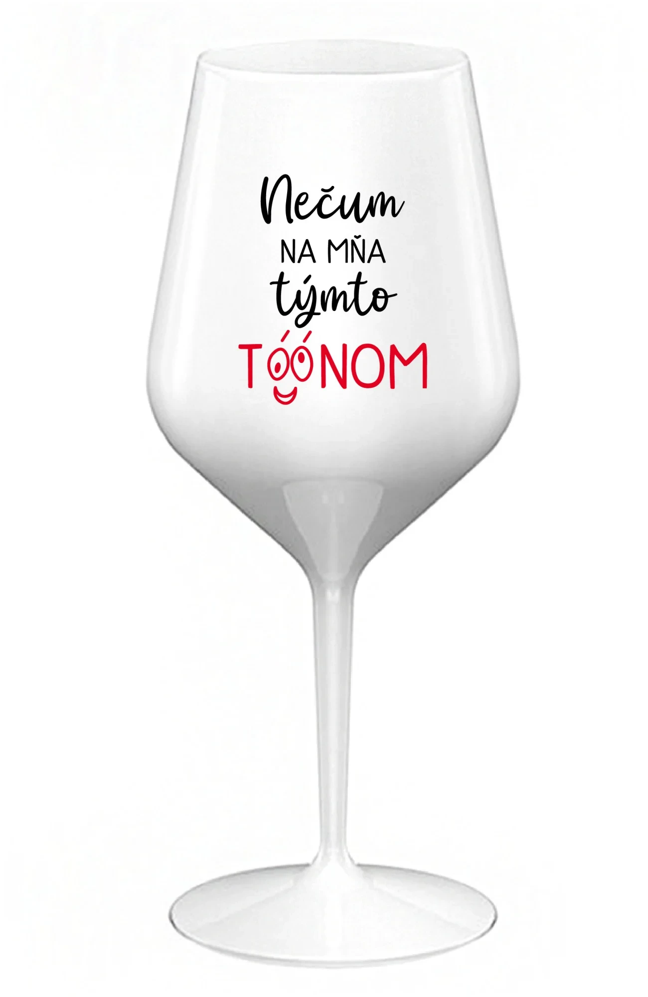 NEČUM NA MŇA TÝMTO TÓÓNOM - biely nerozbitný pohár na víno 470 ml