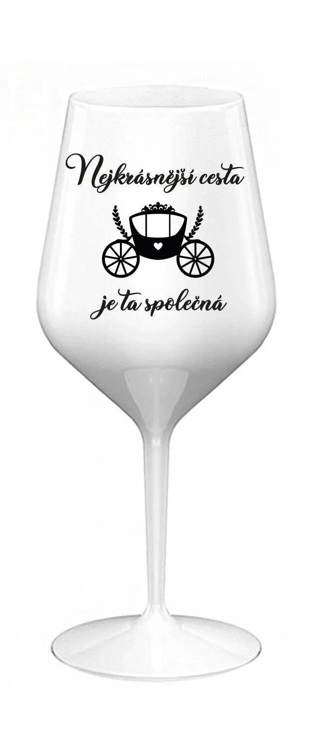 NEJKRÁSNĚJŠÍ CESTA JE TA SPOLEČNÁ - bílá nerozbitná sklenice na víno 470 ml