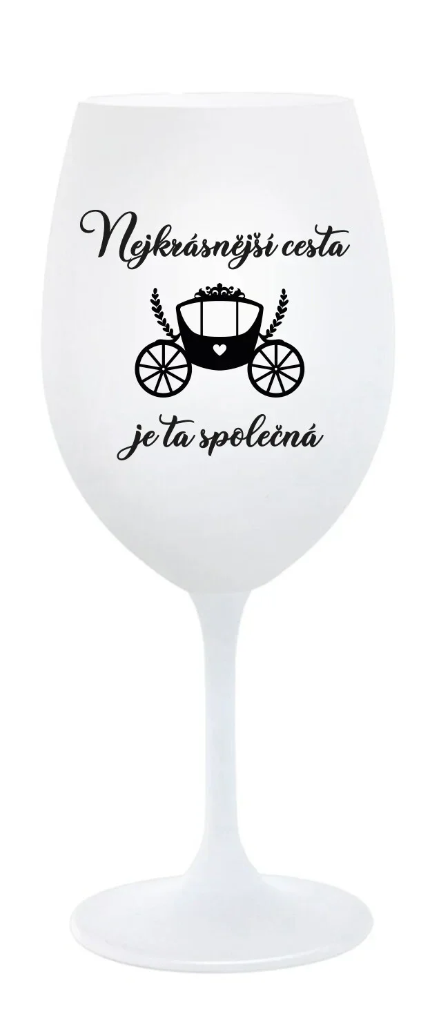 NEJKRÁSNĚJŠÍ CESTA JE TA SPOLEČNÁ - bílá sklenice na víno 350 ml