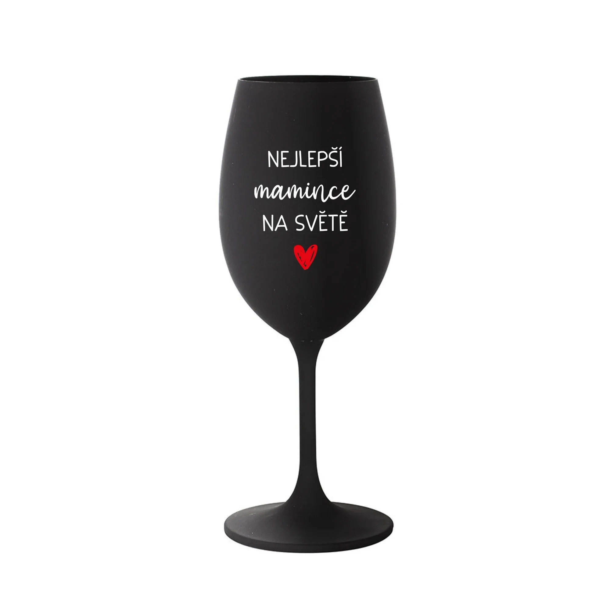 Vinná černá sklenice s originálním motivem NEJLEPŠÍ MAMINCE NA SVĚTĚ je krásným a osobitým dárkem, které ale využijete i Vy sami třeba ve chvílích, kdy si budete chtít zpříjemnit náročný den. Tyto originální vinné sklenice jsou totiž nejen pro výjimečné události, ale i pro běžné večery, které si chcete zpříjemnit sklenkou dobrého vína. Jistě proto potěší každého milovníka vína, i toho, kdo si umí svůj život vychutnat plnými doušky. Materiál sklo. Vyrobené s láskou v ČR