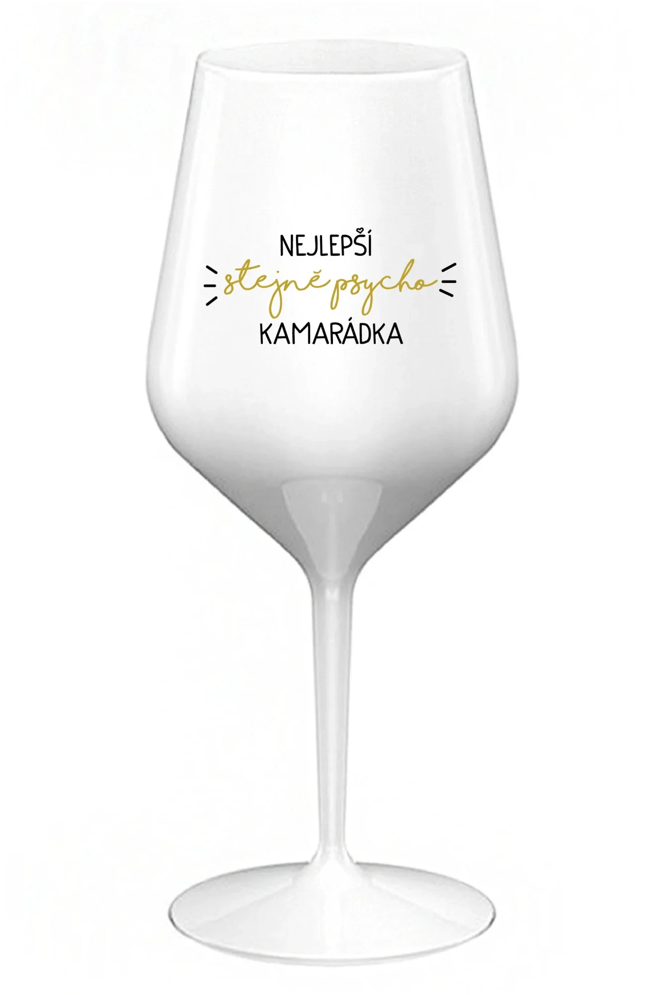 NEJLEPŠÍ STEJNĚ PSYCHO KAMARÁDKA - bílá nerozbitná sklenice na víno 470 ml