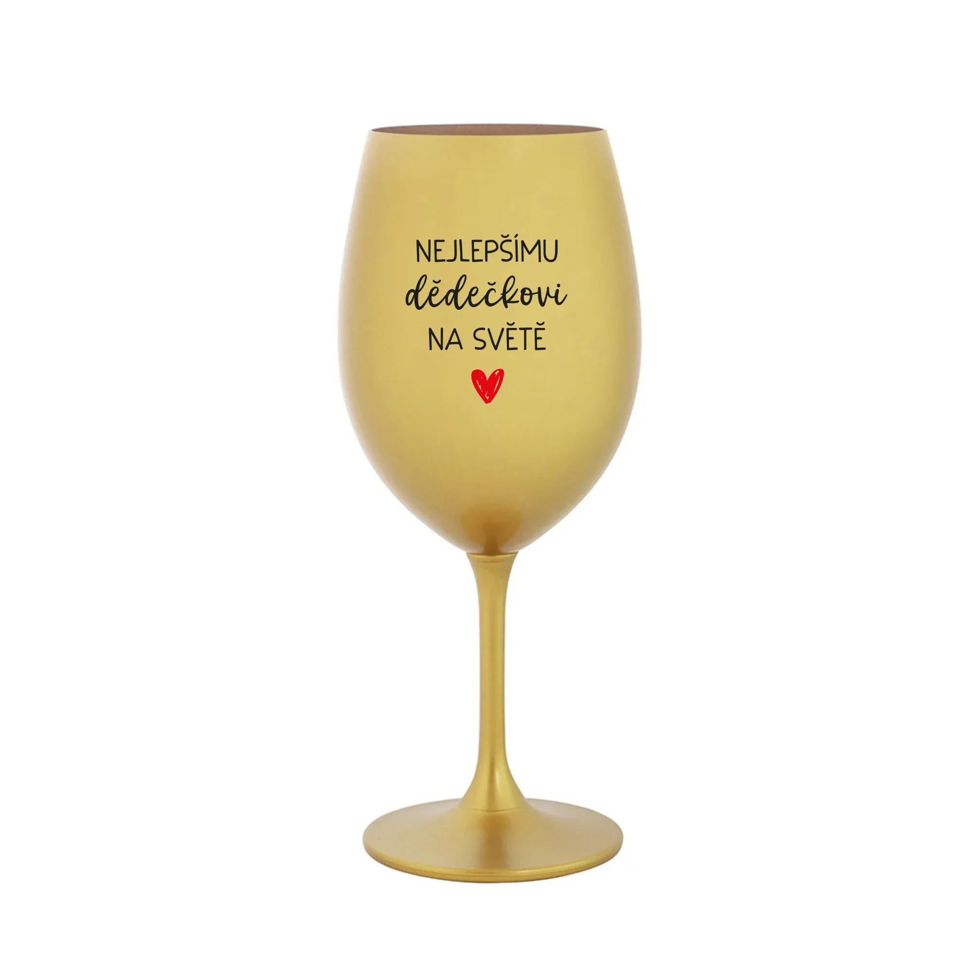 Vinná zlatá sklenice s originálním motivem NEJLEPŠÍMU DĚDĚČKOVI NA SVĚTĚ je krásným a osobitým dárkem, které ale využijete i Vy sami třeba ve chvílích, kdy si budete chtít zpříjemnit náročný den. Tyto originální vinné sklenice jsou totiž nejen pro výjimečné události, ale i pro běžné večery, které si chcete zpříjemnit sklenkou dobrého vína. Jistě proto potěší každého milovníka vína, i toho, kdo si umí svůj život vychutnat plnými doušky. Materiál sklo. Vyrobené s láskou v ČR