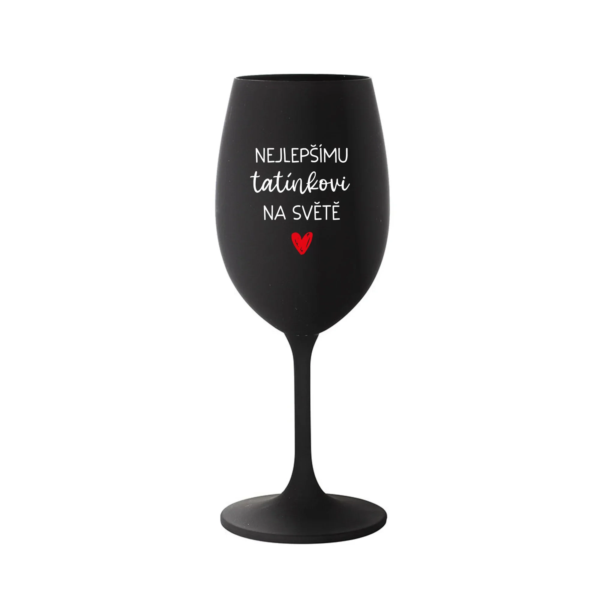 Vinná černá sklenice s originálním motivem NEJLEPŠÍMU TATÍNKOVI NA SVĚTĚ je krásným a osobitým dárkem, které ale využijete i Vy sami třeba ve chvílích, kdy si budete chtít zpříjemnit náročný den. Tyto originální vinné sklenice jsou totiž nejen pro výjimečné události, ale i pro běžné večery, které si chcete zpříjemnit sklenkou dobrého vína. Jistě proto potěší každého milovníka vína, i toho, kdo si umí svůj život vychutnat plnými doušky. Materiál sklo. Vyrobené s láskou v ČR