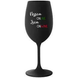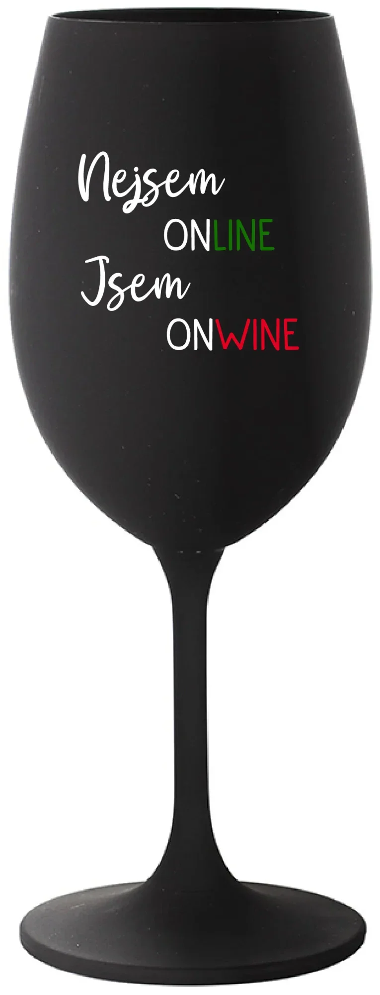 NEJSEM ONLINE JSEM ONWINE - černá sklenice na víno 350 ml