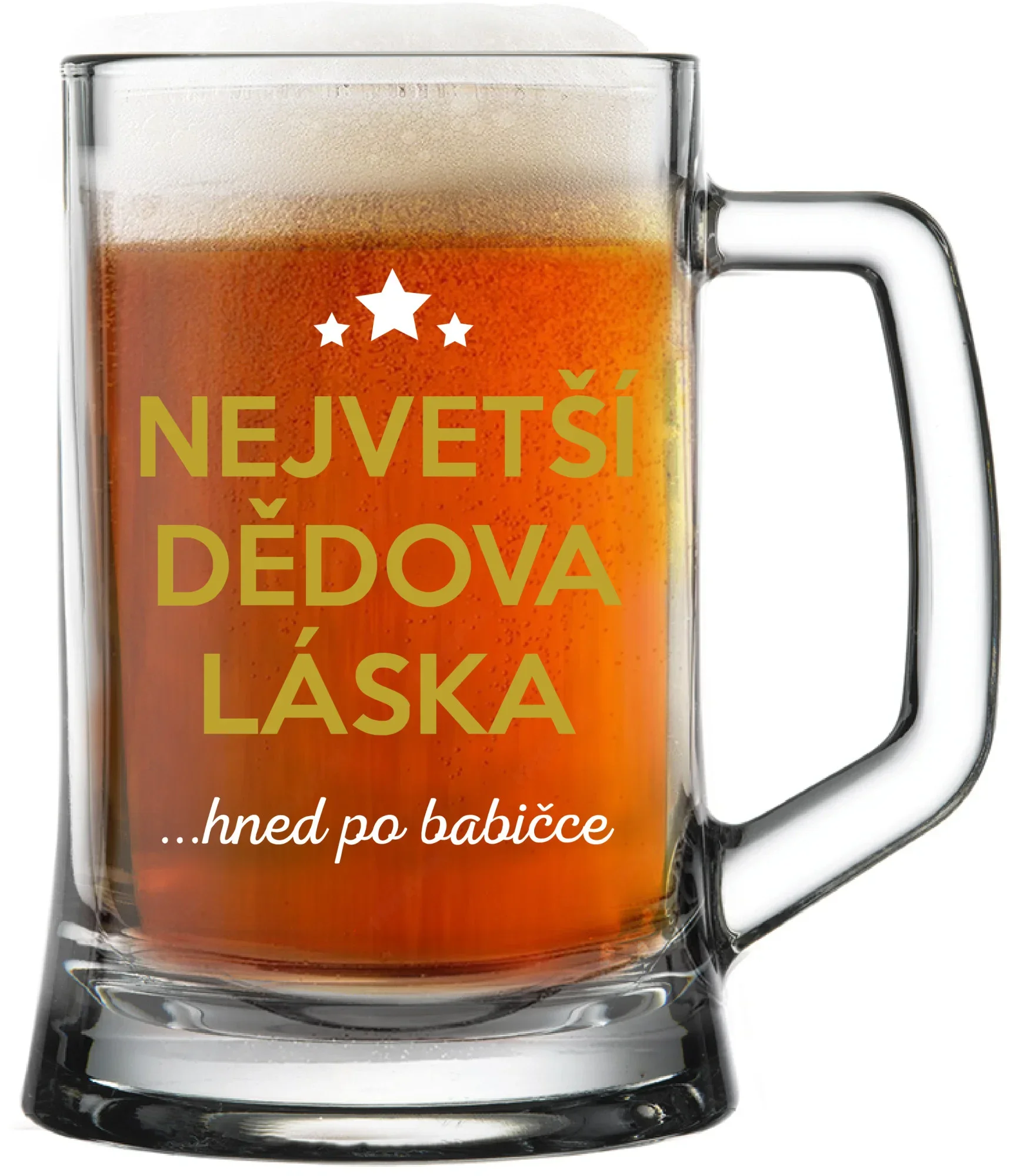 NEJVĚTŠÍ DĚDOVA LÁSKA...HNED PO BABIČCE - pivní sklenice 0,5 l