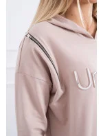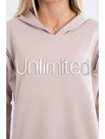 Představujeme vám módní šaty. Na šatech je nápis unlimited. Vrchní část šatů má svislé zipy. Šaty s delšími zády a kapucí. Šaty s kapsami s nášivkami. Ideální každodenní poloha. Šaty jsou vyrobeny z vysoce kvalitního materiálu. Velikost je univerzální a vyhovuje dámám, které nosí velikost S, M nebo L.
