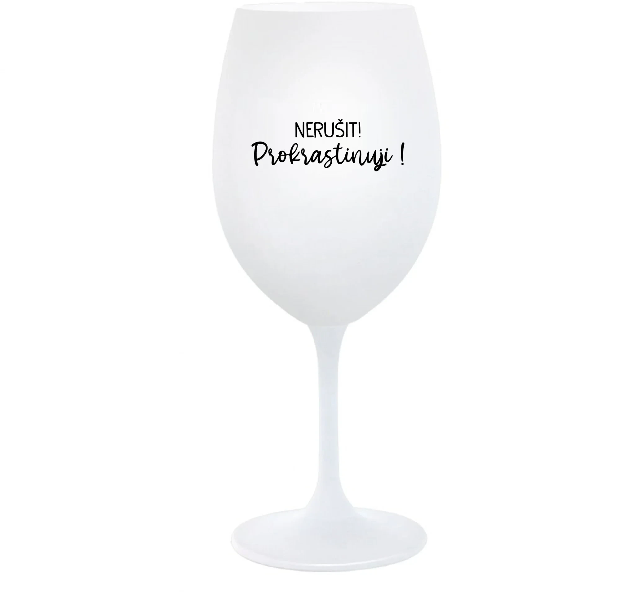 NERUŠIT! PROKRASTINUJI! - bílá sklenice na víno 350 ml