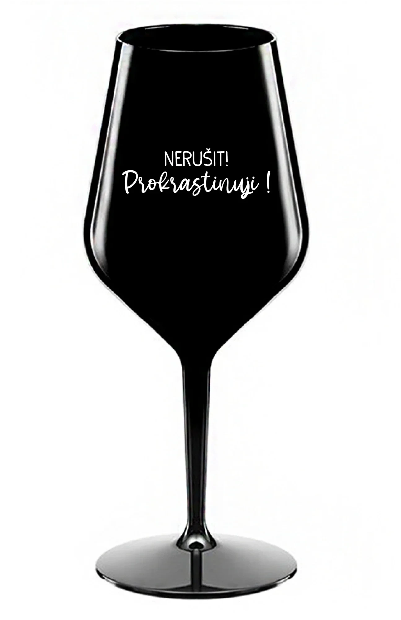 NERUŠIT! PROKRASTINUJI! - černá nerozbitná sklenice na víno 470 ml