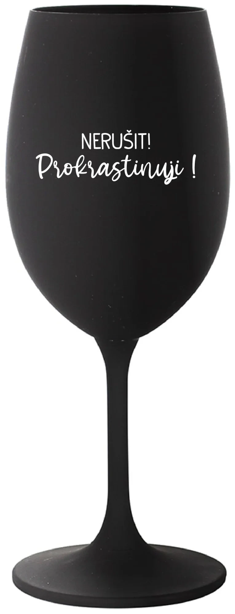 NERUŠIT! PROKRASTINUJI! - černá sklenice na víno 350 ml