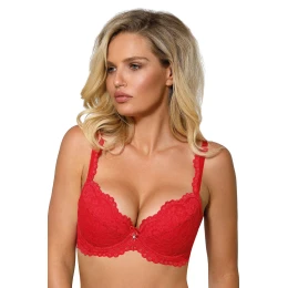 Podprsenka značky Róża, model Newia. má drátky, které podporují prsa a správně je tvarují. výrobek má nastavitelná ramínka bez možnosti jejich odepnutí. háčky na ramínka. podprsenka se zapíná na háčky. místo zapínání: na zádech. výrobek je vyroben z 85 % polyamidu, 10 % elastanu, 5 % bavlny. výrobek má kapsy na vložky. dámský výrobek.
