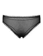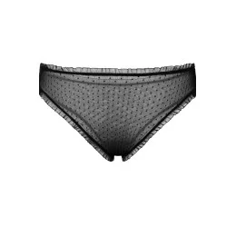 Klasické kalhotky z jemného černého centu. Je vyroben z tylové tkaniny a zakončen černým volánem.
