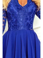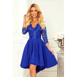 NICOLLE - Světle modré dámské šaty s delším zadním dílem a s krajkovým výstřihem 210-12