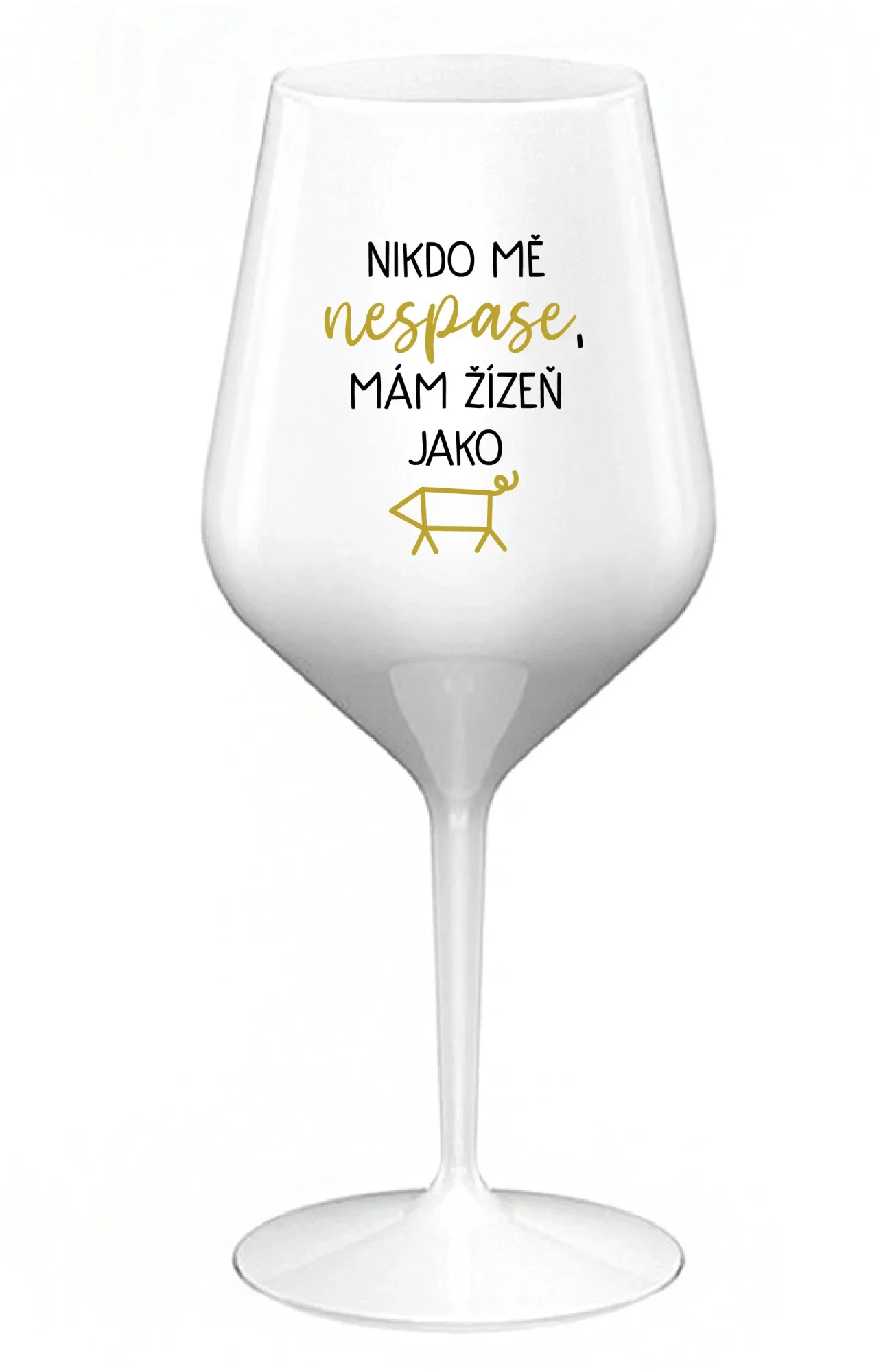 NIKDO MĚ NESPASE, MÁM ŽÍZEŇ JAKO PRASE - biely nerozbitný pohár na víno 470 ml