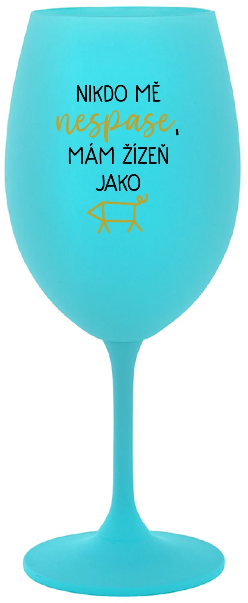 NIKDO MĚ NESPASE, MÁM ŽÍZEŇ JAKO PRASE - tyrkysová sklenice na víno 350 ml