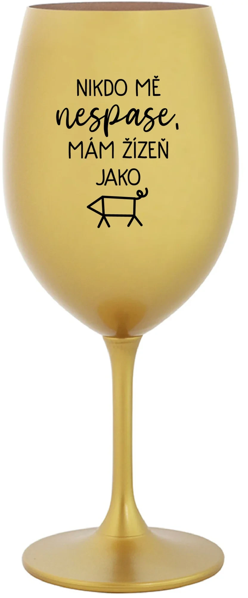 NIKDO MĚ NESPASE, MÁM ŽÍZEŇ JAKO PRASE - zlatá sklenice na víno 350 ml