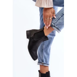 Nízké dámské Chelsea boty s ozdobou, černá Donname