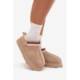 Nízké dámské sněhule na platformě s pohyblivým páskem a výšivkou Lyrisse – jasně béžové