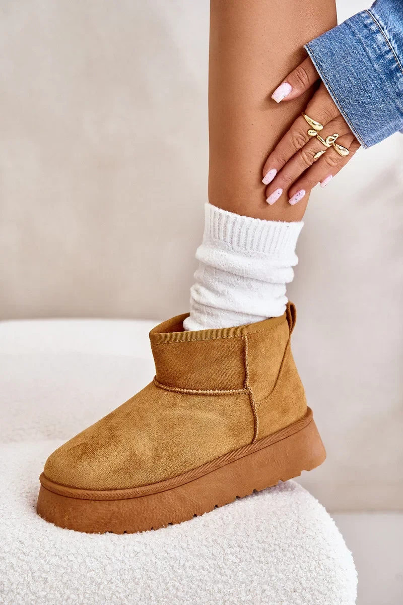 Nízké dámské sněhule na platformě zateplené kožíškem Camel Saldren
