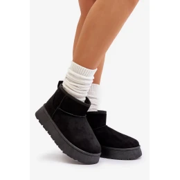 Nízké dámské sněhule na platformě zateplené kožíškem černé Saldren