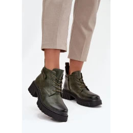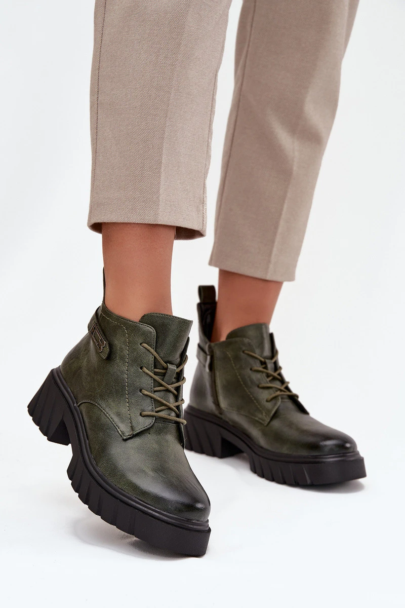 Nízké zateplené dámské boty na klínku s ozdobným páskem tmavě zelené Therisse