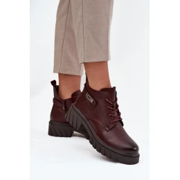 Nízké zateplené dámské kotníkové boty na klínku s ozdobným páskem bordó Therisse