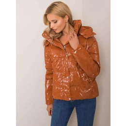 Hnědá zimní bunda s kapucí.