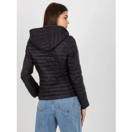 Černá prošívaná bunda s kapucí.