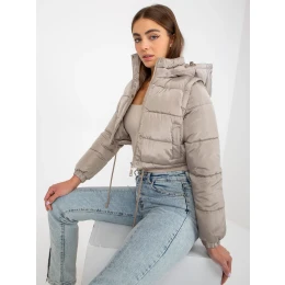 Tmavě béžová krátká zimní bunda 2 v 1 s kapucí .