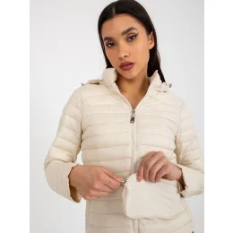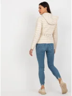 Světle béžová přechodná prošívaná bunda s kapucí a kapsou .