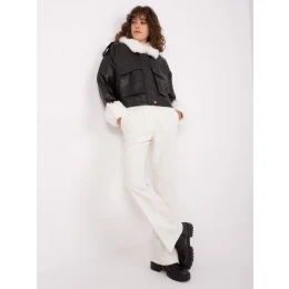 Černobílá zimní bunda s ozdobnou kožešinou .