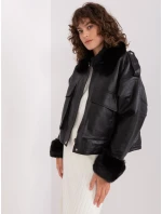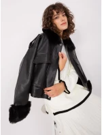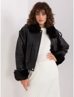Černobílá zimní bunda s ozdobnou kožešinou .