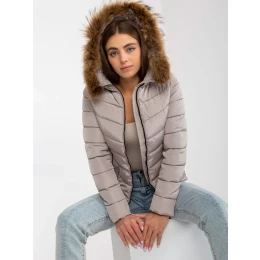 Tmavě béžová prošívaná přechodová bunda s kapucí .
