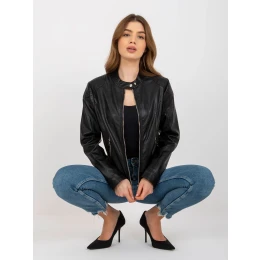 Černá motorkářská bunda z ekokůže s kapsami .