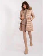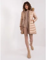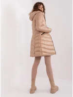 Tmavě béžová prošívaná přechodová bunda s kapucí .