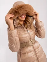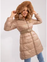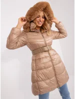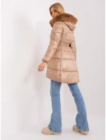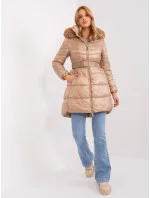 Tmavě béžová prošívaná přechodová bunda s kapucí .