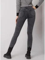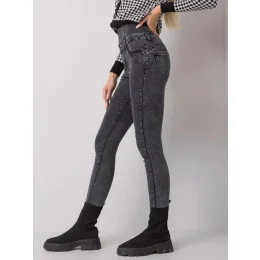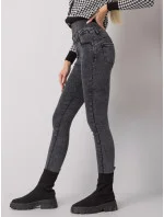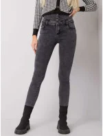 Šedé džíny s vysokým pasem .