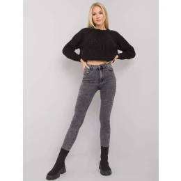 Šedé džínové kalhoty s vysokým pasem.