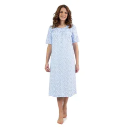 Noční košile 013 blue plus REGINA - světle modrá barva - z vysoce jakostní bavlny - se vzorem - kulatý výstřih - krátké rukávy - zapínání na knoflíky