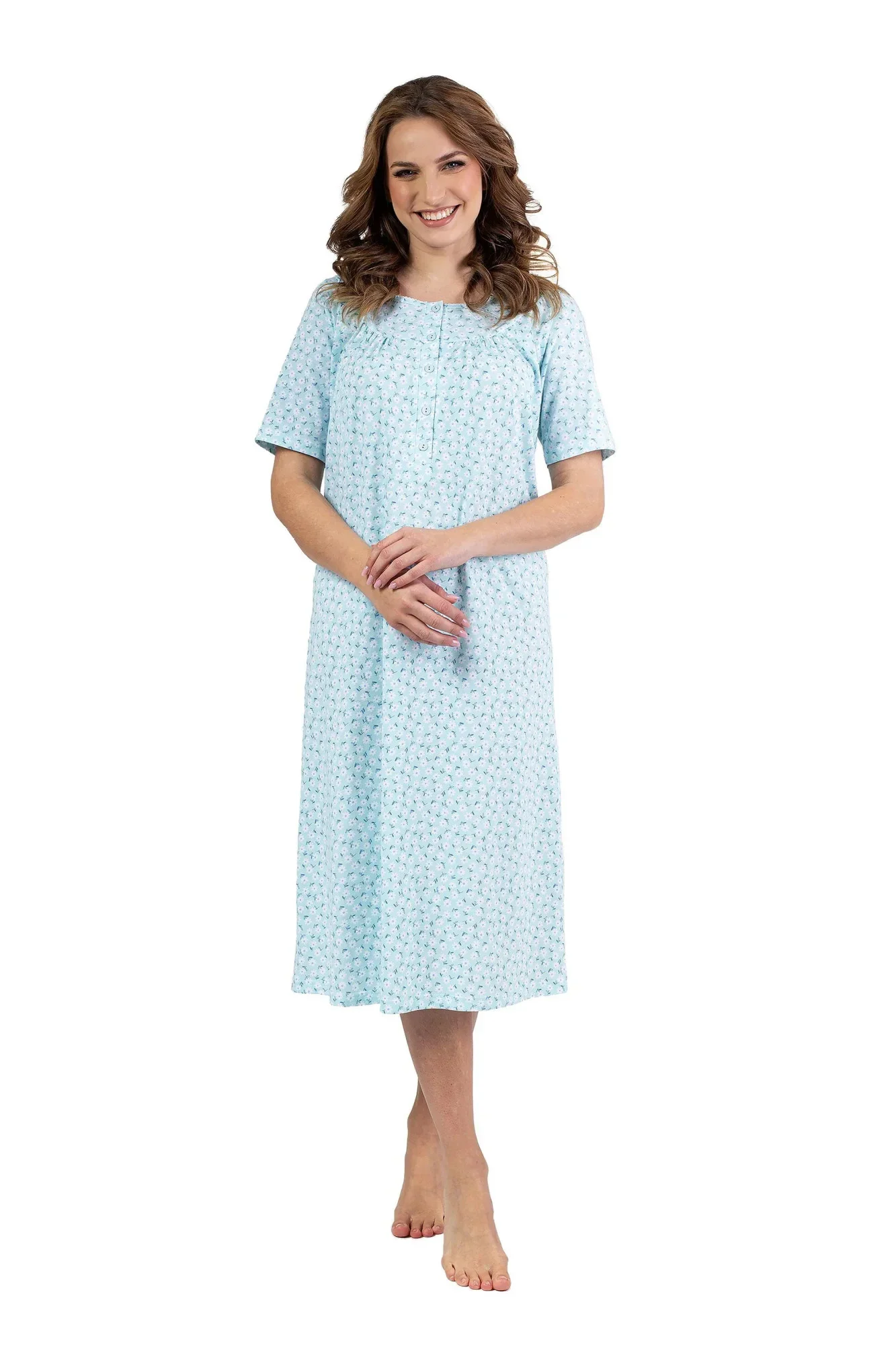 Noční košile 013 green plus REGINA - zelená barva - z vysoce jakostní bavlny - se vzorem - kulatý výstřih - krátké rukávy - zapínání na knoflíky